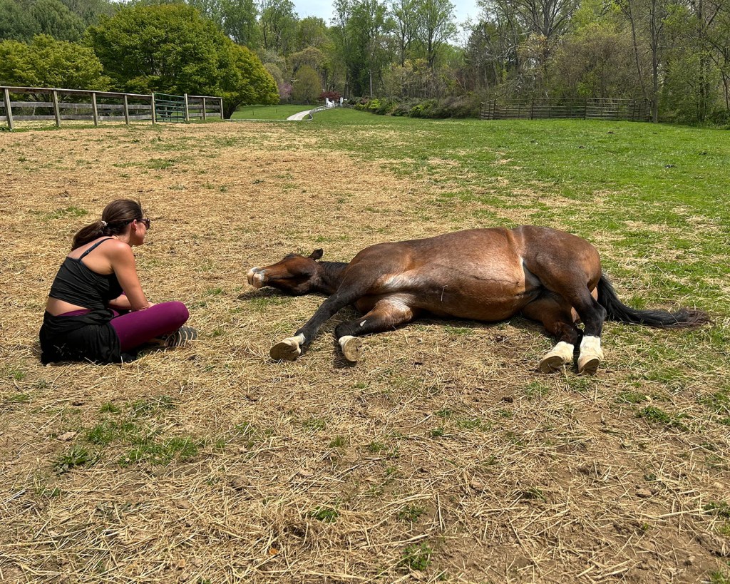 What I can ground in observation is that more relaxation and more sleep results in healthier horses and healthier people. In addition, the profound experience of a horse choosing to stand with, or lie down with a person creates a remarkable space of openness to trust and connection to the thoughts and feelings that arise. There is something fertile in the space of allowing thoughts and feelings to arise without striving for the “right words” right away. If and when we need the words, they will come.