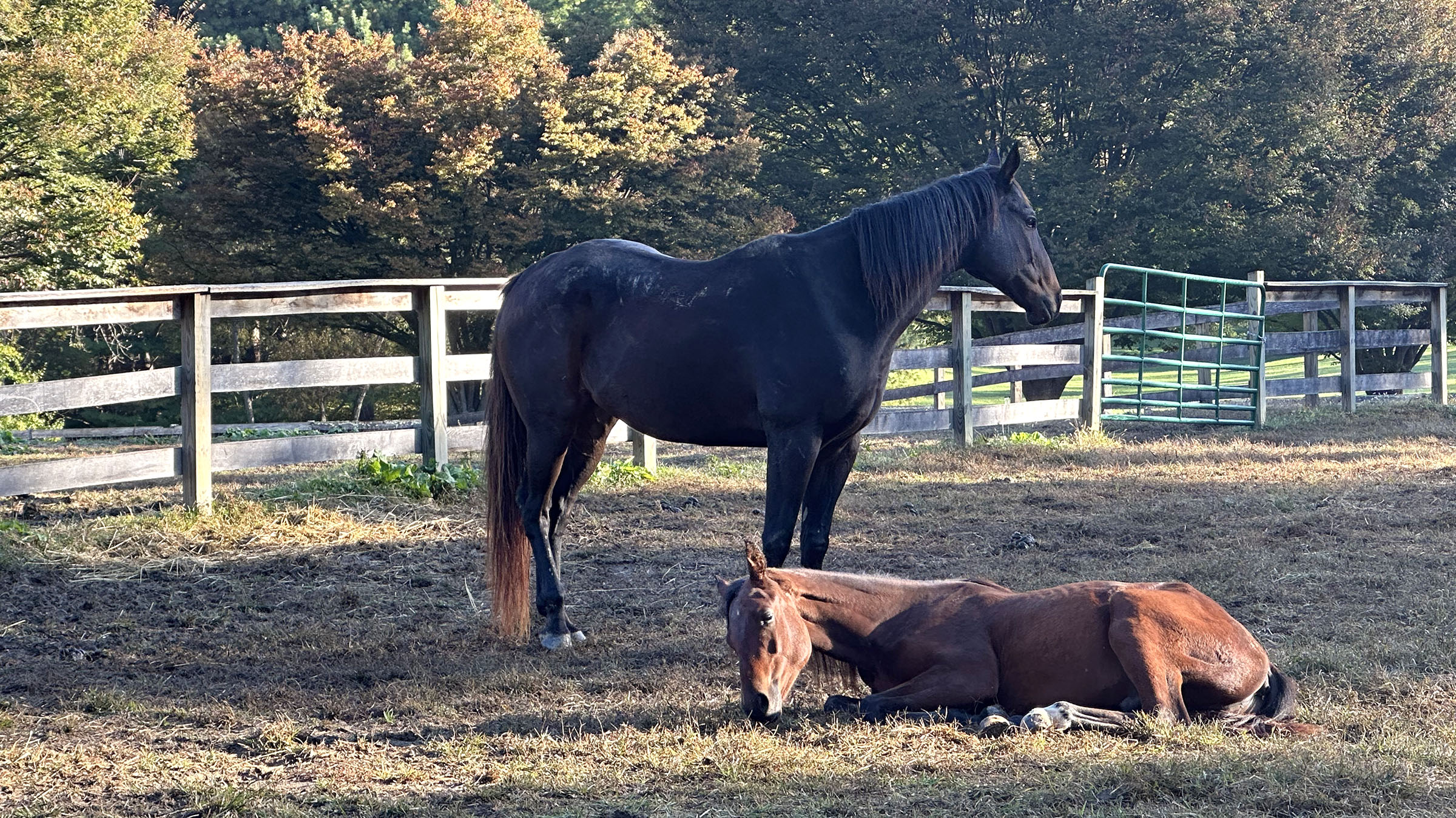 Every time since then, when the little guy is lying down, Chip stands watch over him. He has become like a big brother – still testing him, and pushing on him at times, but sharing hay, sharing space, watching over him when he’s resting. And the yearling runs after him, follows his lead, and finds security being near him. It is a symbiotic relationship, nourishing both of them.